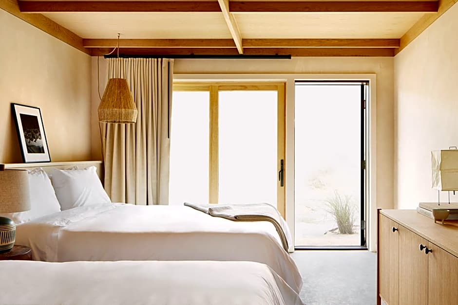 This ground floor Double Queen shares a spacious private walkway and patio with a neighboring King room and opens directly onto our lush, natural dune-scape courtyard. This room features a king bed and a day bed